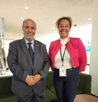 Working closely with geospatial societies members: Representative from International Society of Photogrammetry and Remote Sensing (ISPRS) in conversation with FIG President Dr. Diane Dumashie