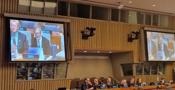 Mikael Lilje, Sweden, FIG Vice President 2020-2024, speaking at the UN-GGIM 15th session