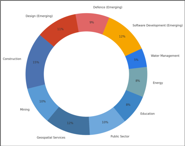 A graduate survey conducted with all graduates since 2018 received 272 responses from a total of 576 graduates, noting that many respondents had articulated through more than one qualification. Employment outcomes were reported across a wide range of sectors, including construction, mining, geospatial services, the public sector, education, energy, and water management. Nearly 30 percent of respondents reported employment in emerging fields such as software development, defence, and design.